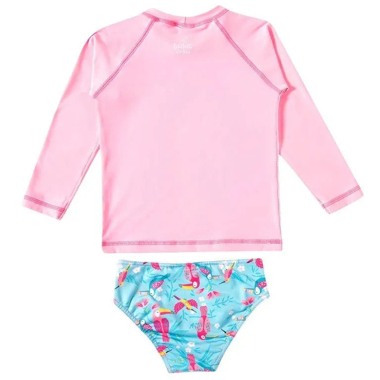 Conjunto Praia para Menina – Este adorável conjunto de long sleeve e biquíni em tons de rosa e azul é perfeito para os dias ensolarados. Com um encantador estampa de tucano, ele combina estilo e conforto, garantindo que sua pequena esteja sempre na moda à beira da piscina ou na praia. Disponível nos tamanhos 4 ao 10, o conjunto é ideal para proporcionar liberdade de movimento e proteção contra o sol