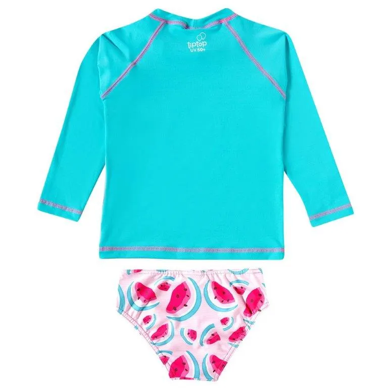 Conjunto Praia Tip Top, ideal para as pequenas que adoram se divertir sob o sol! Este maiô para meninas, disponível nos tamanhos 4 ao 10, apresenta um adorável design de melancia que traz um toque divertido e refrescante ao guarda-roupa de verão. Confeccionado com materiais de alta qualidade, garante conforto e liberdade de movimento, permitindo que sua filha brinque à vontade na praia ou na piscina